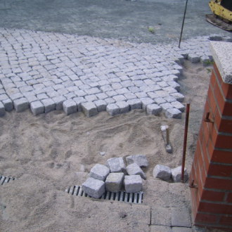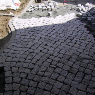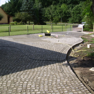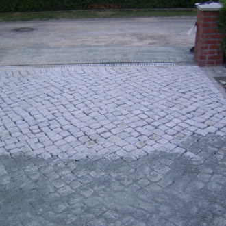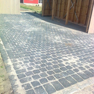 Auffahrt mit Kleinpflaster 9/11 Porto Grau im Passeverband
