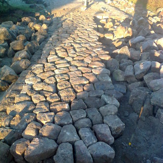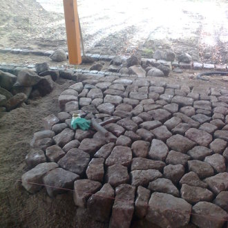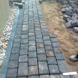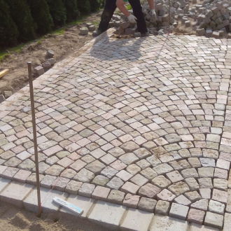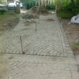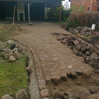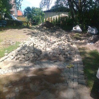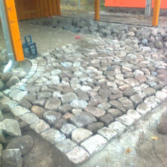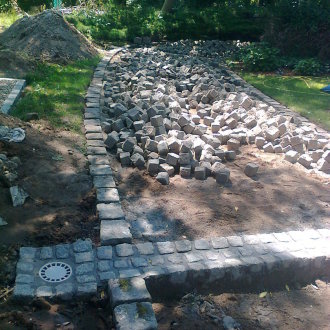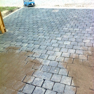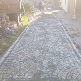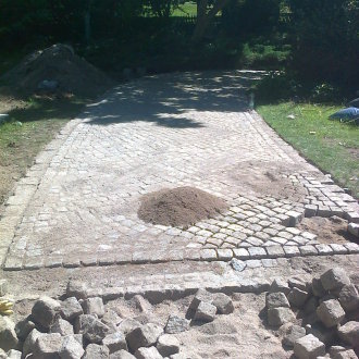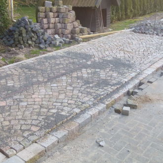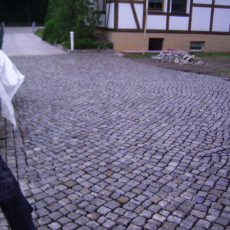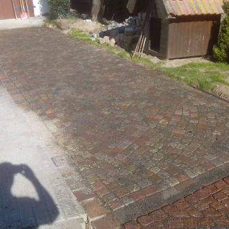 Auffahrt mit gebrauchtem Kleinpflaster 9/11 im Passeverband